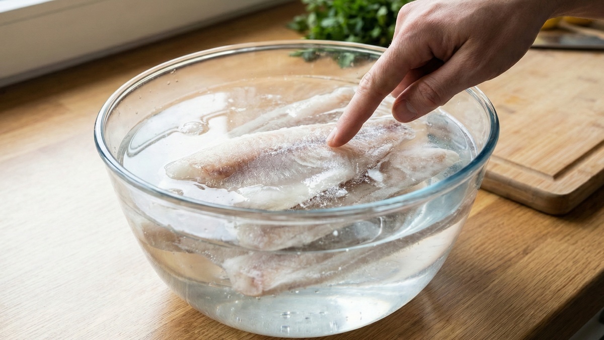 소금물에 냉동 생선을 그대로 담근 뒤 약 7~10분이 지나면 생선이 겉면부터 속까지 고르게 해동된다. 이후 생선을 꺼내 물기를 닦아주면 조직이 물러지지 않으면서 비린내도 적은 상태를 확인할 수 있다.