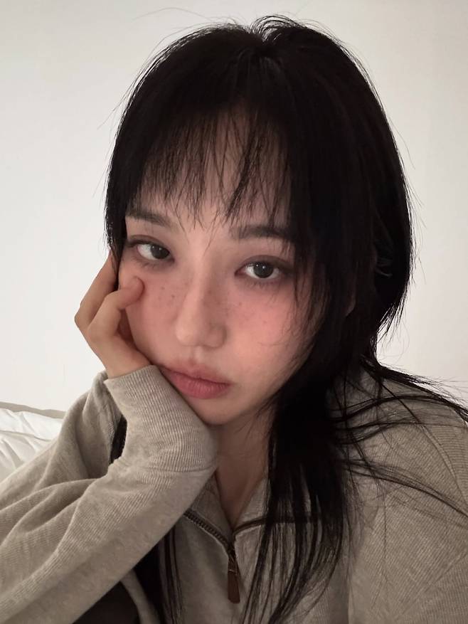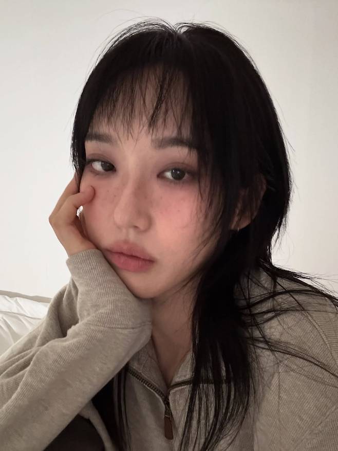 사진 속 한지현 씨는 편안한 회색 집업 차림에 얼굴을 자연스럽게 감싸는 거친 질감의 헤어스타일을 매치했는데요.
