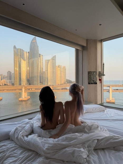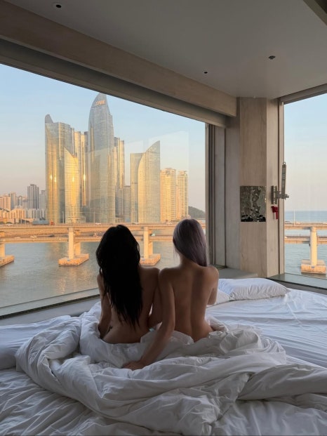 도심 속 스파에서 블랙 비키니로 고급스러우면서도 세련된 분위기를 완성했다.