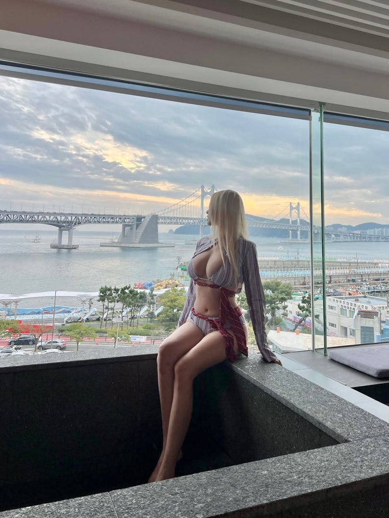 염색한 금발 헤어는 시크한 비키니와 찰떡처럼 어울리며 이국적인 무드를 완성했다.