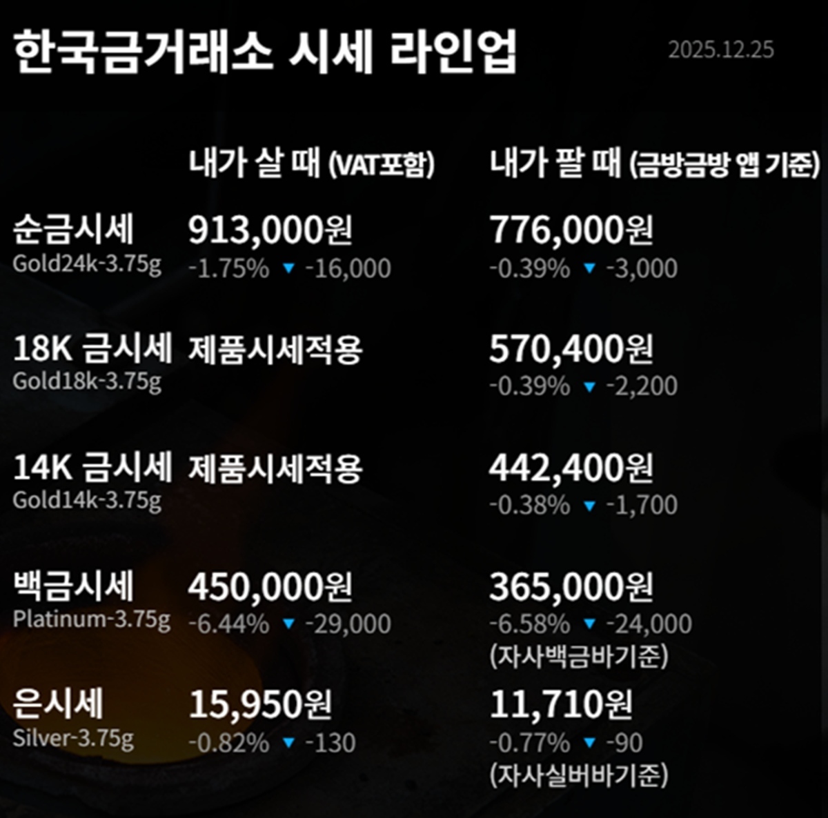 순금(24K) : 매입가 91만 3000원 / 매도가 77만 6000원