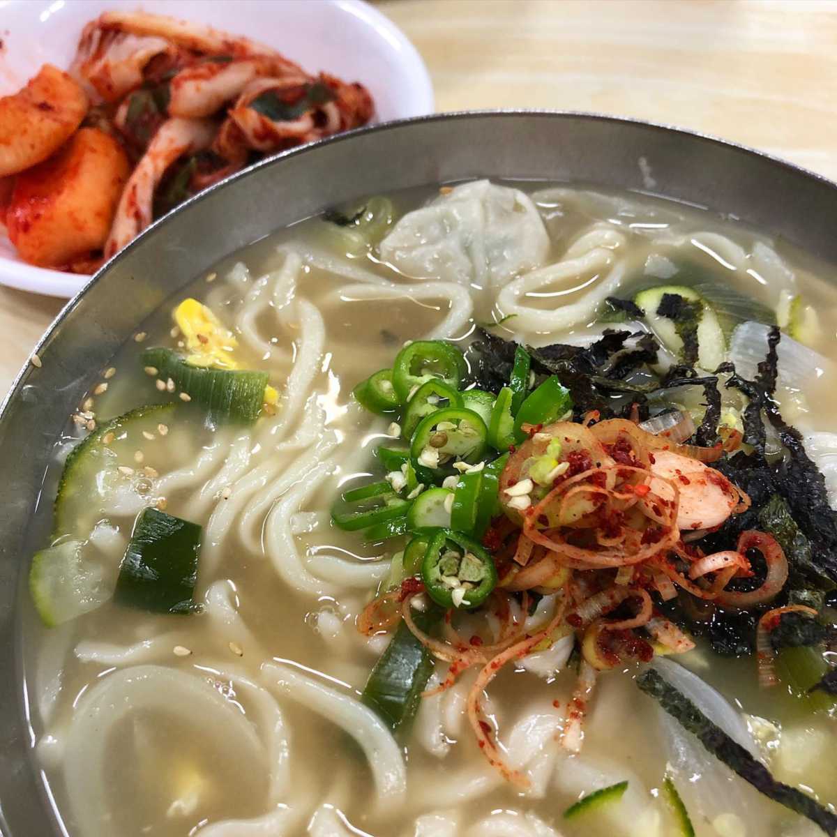 끊이지 않는 웨이팅으로 맛집임을 증명하는 북창동 ‘현대칼국수’. 오래된 업력의 전통 있는 식당으로 ‘칼국수’를 대표 메뉴로 한다. 깊고 진한 멸치육수가 일품인 칼국수는 비주얼만으로도 그 진한 국물을 확인할 수 있을 정도. 부드러운 식감의 면발은 입에 착착 감긴다. 칼국수만으로도 맛있지만 만두와 함께 섞여 나오는 섞어칼국수도 인기. 매콤한 양념이 되어있는 파를 풀어 칼칼하게 먹어도 좋다.