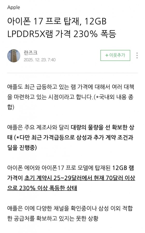 17프로 라인 내년에 출고가 인상안하면 다행이고 아이폰18 시리즈 가격인상도 정해진 수순인듯ㄷㄷㄷㄷ출처)란즈크 블로그 앉아있을때 자세.. 남녀 신체차이시험 도중 교실을 나간 선생님이 발견된 곳 ㄷ한국 놀러온 장송의프리렌 작가블라인드에 올라왔다 욕먹고 글삭튀했던 소방관 일상사람마다 갈란다는 삼겹살 취향