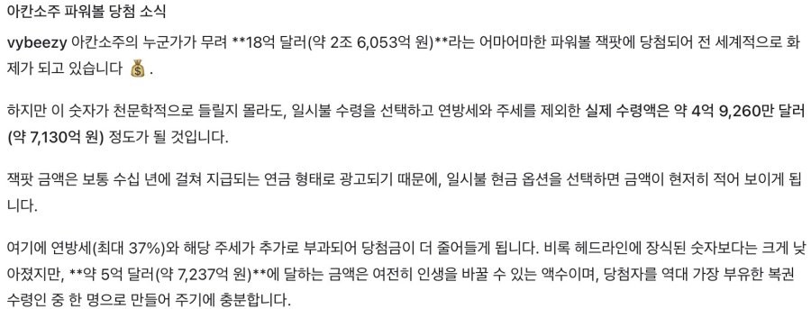 미국에서 무려 2조 6천억원짜리 복권 당첨자 탄생함