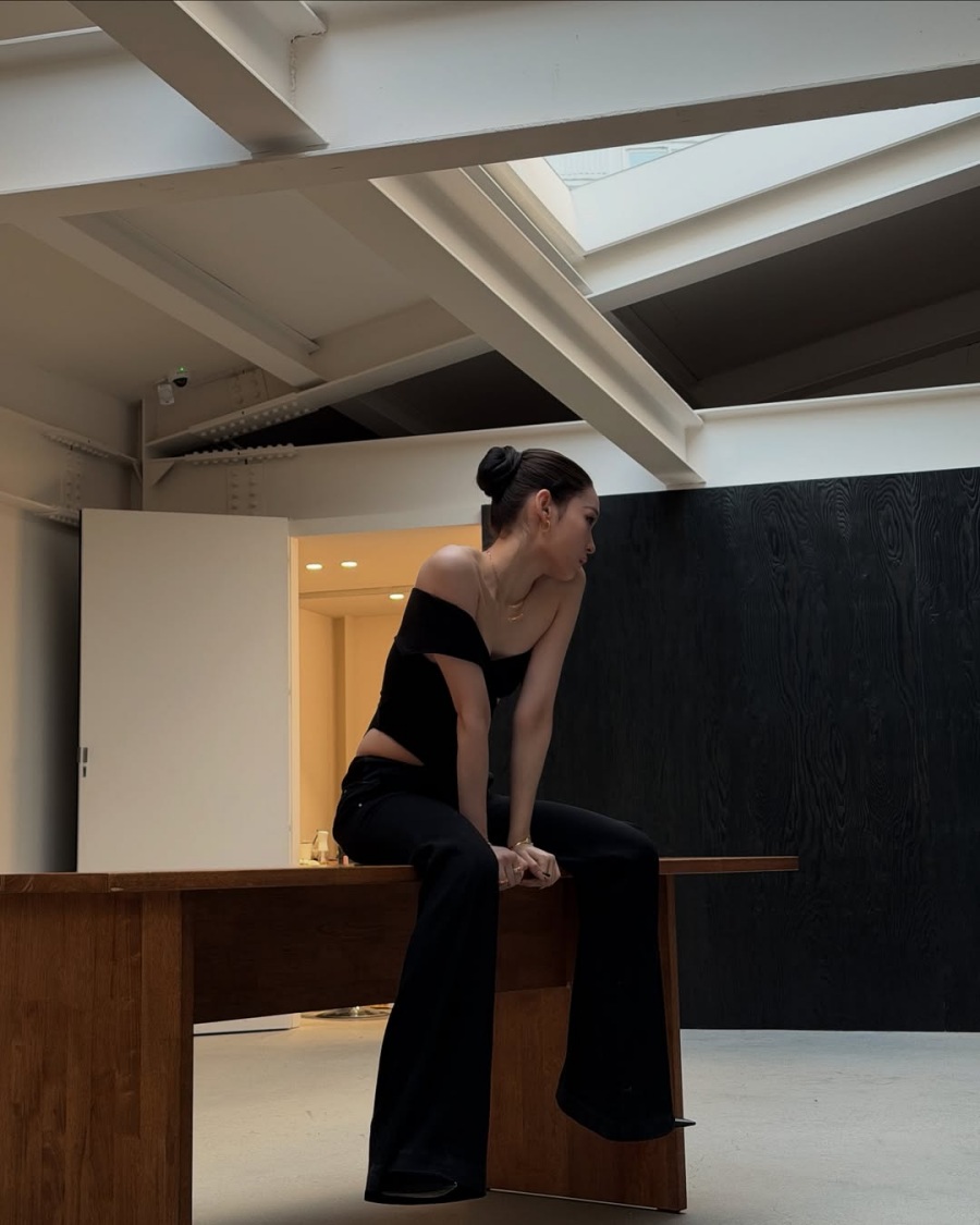공개된 사진 속 애니는 어깨 라인이 드러나는 블랙 오프숄더 톱과 슬랙스를 매치해 시크한 무드를 연출했다. 군더더기 없는 디자인이 오히려 몸선과 비율을 또렷하게 드러내며, 고급스러운 긴장감을 만든다.
