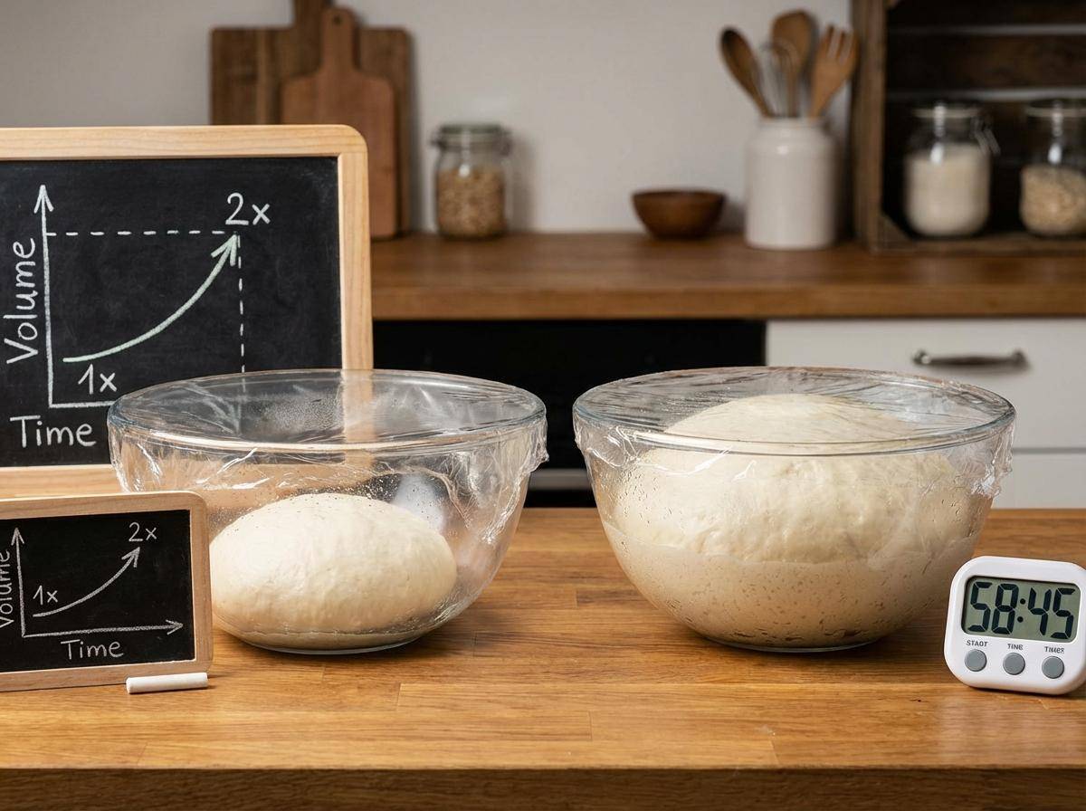 1차 발효는 반죽을 둥글게 말아 볼에 담고 랩을 씌운 뒤 따뜻한 곳에서 진행한다. 보통 50분에서 1시간 정도면 처음 크기의 두 배로 부풀어 오른다. 손가락에 밀가루를 묻혀 찔렀을 때 구멍이 그대로 유지되면 발효가 적당히 진행된 것이다.