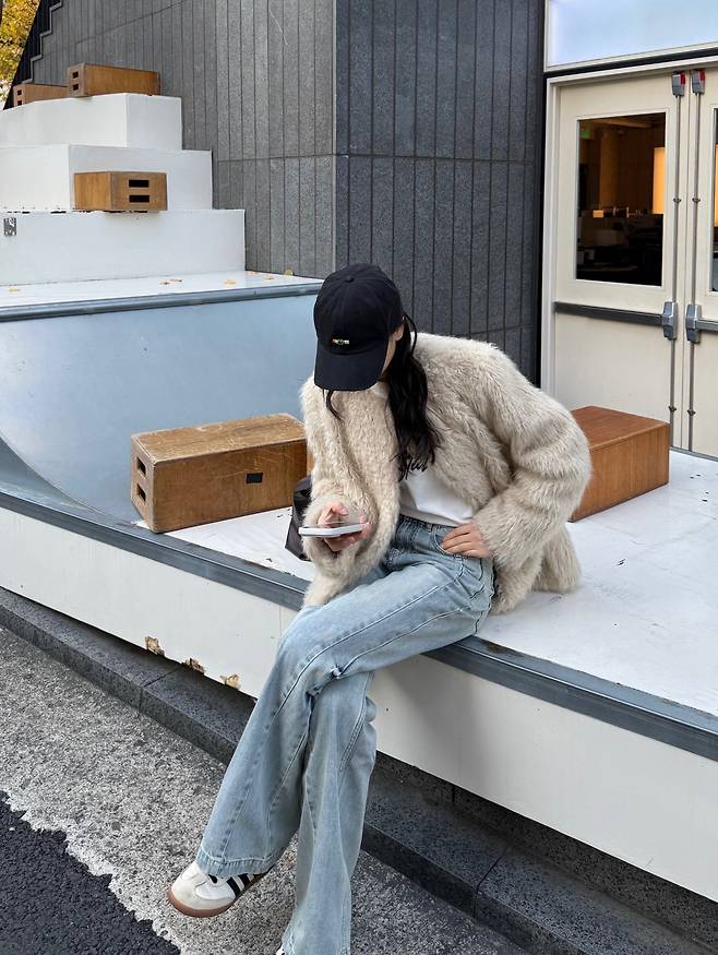 사진 속 손연재 씨는 부드러운 질감이 느껴지는 아이보리색 퍼 자켓에 편안한 데님 팬츠를 매치해 포근하면서도 감각적인 일상 룩을 선보였는데요.