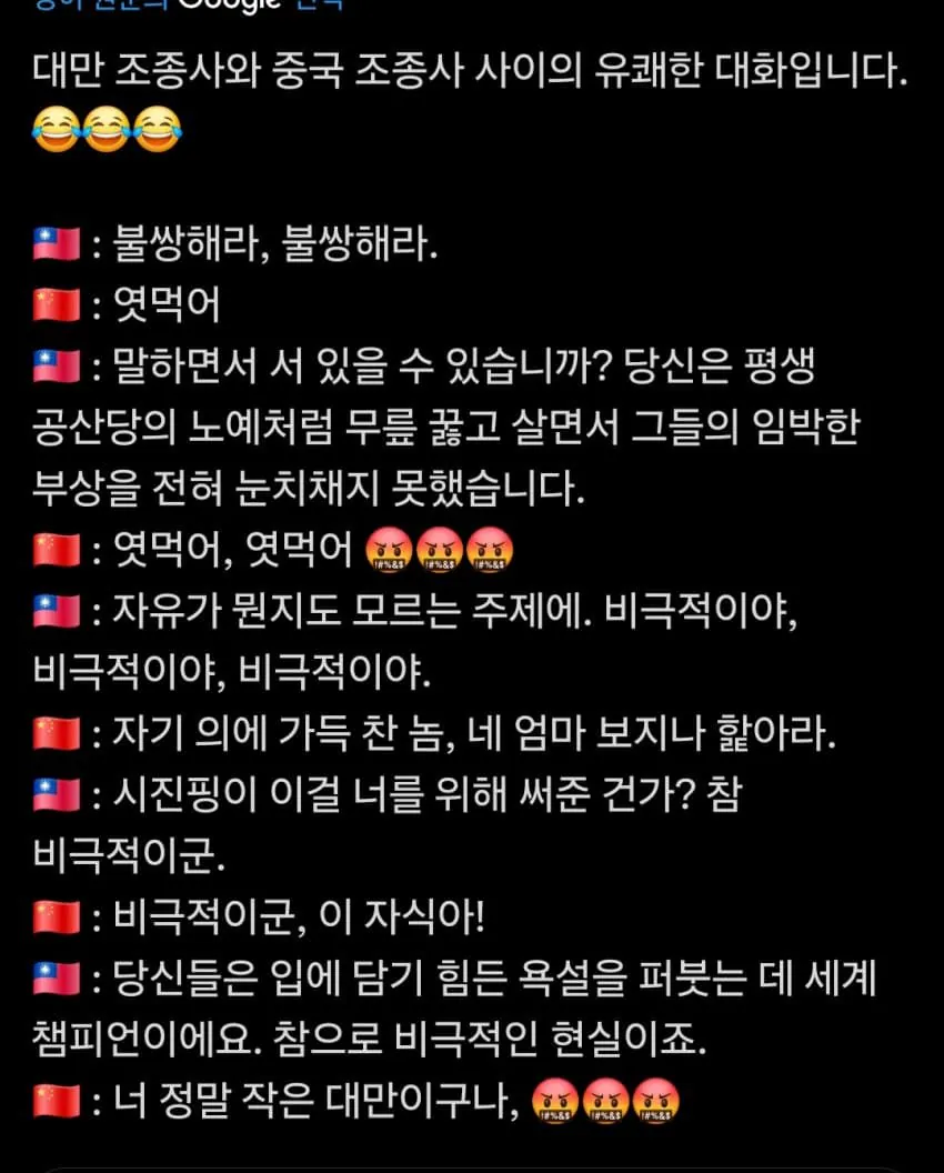 대만해협에서 대치했던 대만 중국 전투기간 교신내용