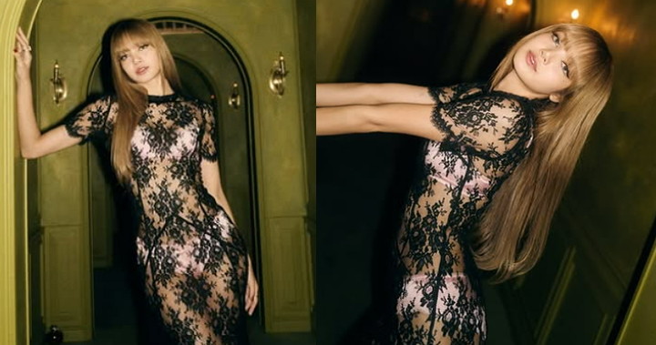 공개된 사진에는 핑크톤 속옷 위에 검정 시스루 드레스를 입은 리사의 모습이 담겨 많은 이들의 시선을 끌었다.