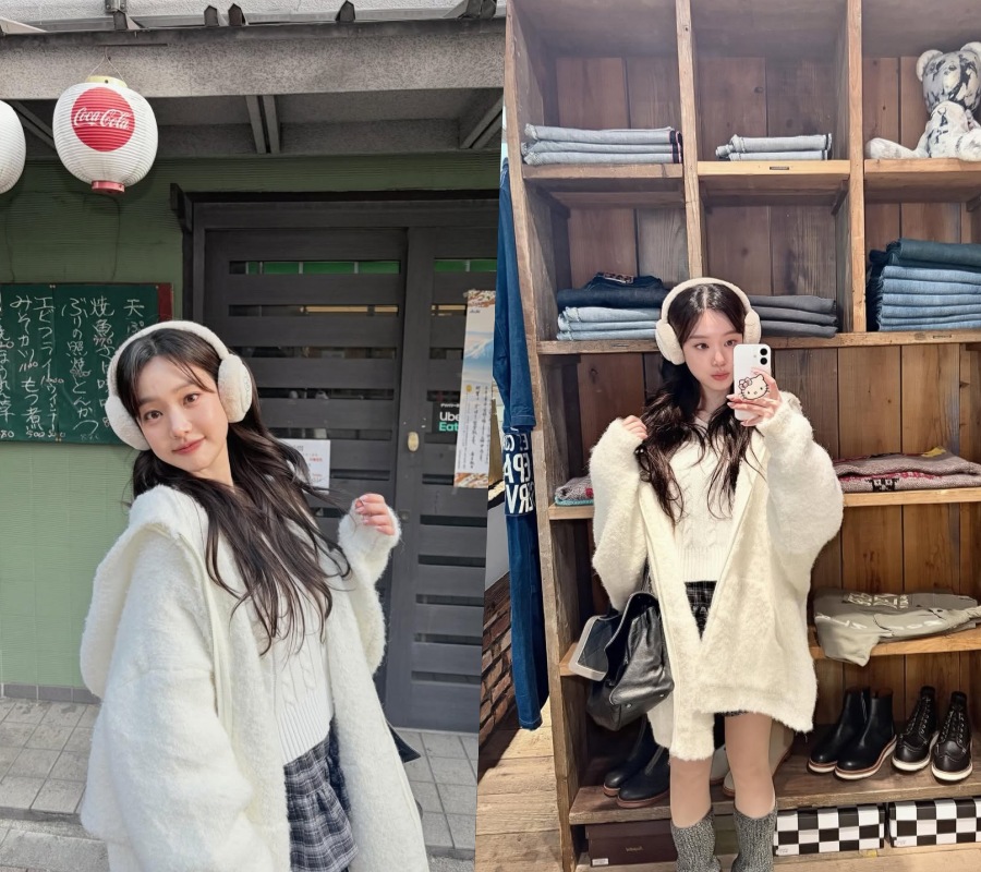 공개된 사진 속 이유비는 포근한 퍼 재킷과 니트 톱, 체크 미니스커트를 매치해 겨울 감성을 완성했다. 귀를 덮는 이어머프와 루즈한 헤어 스타일이 더해지며 전체적으로 부드럽고 러블리한 무드를 만든다.