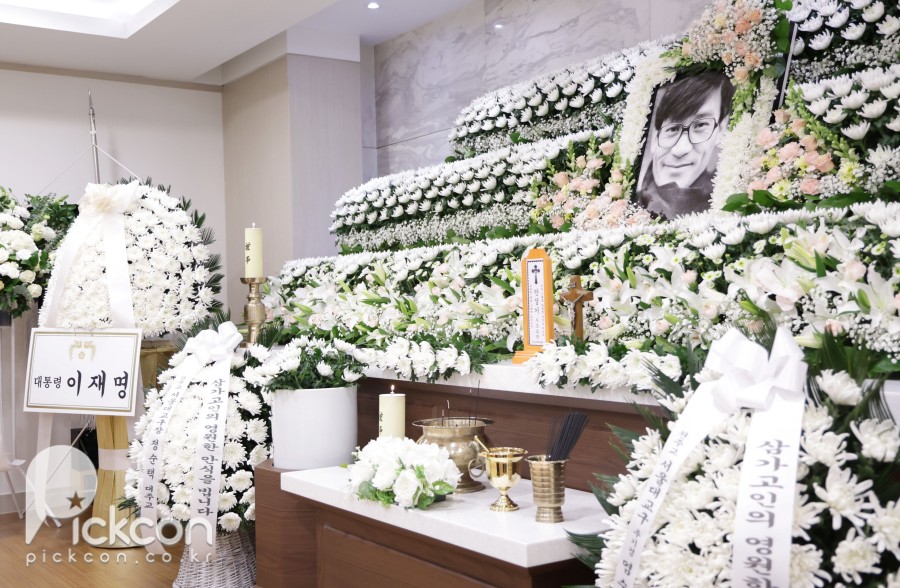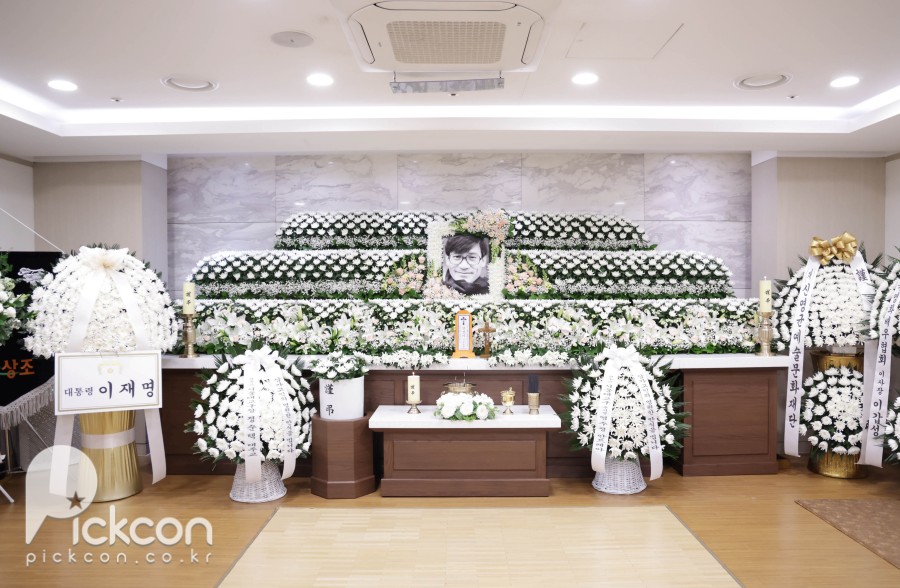 사진: 사진공동취재단5일 서울 서초구 가톨릭대학교 서울성모병원 장례식장에 배우 故 안성기의 빈소가 마련됐다. 빈소에는 연예계 및 각계에서 보낸 근조화환이 놓여 있다.