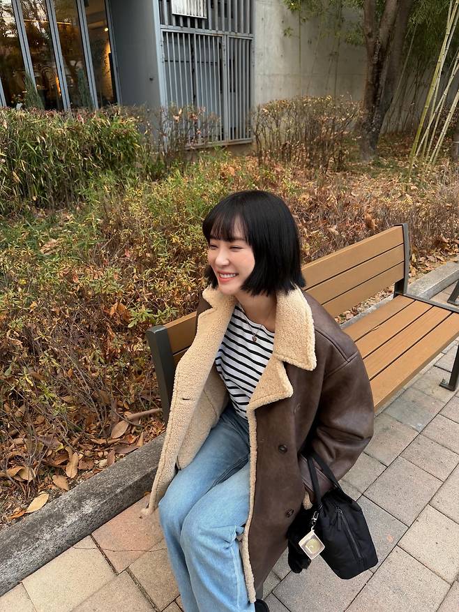 무심하게 툭 걸친 듯한 캐주얼한 차림 속에서도 그녀만의 도시적이고 세련된 분위기를 완성해 주는 결정적인 요소는 바로 깔끔하게 정돈된 단발 헤어스타일이랍니다.