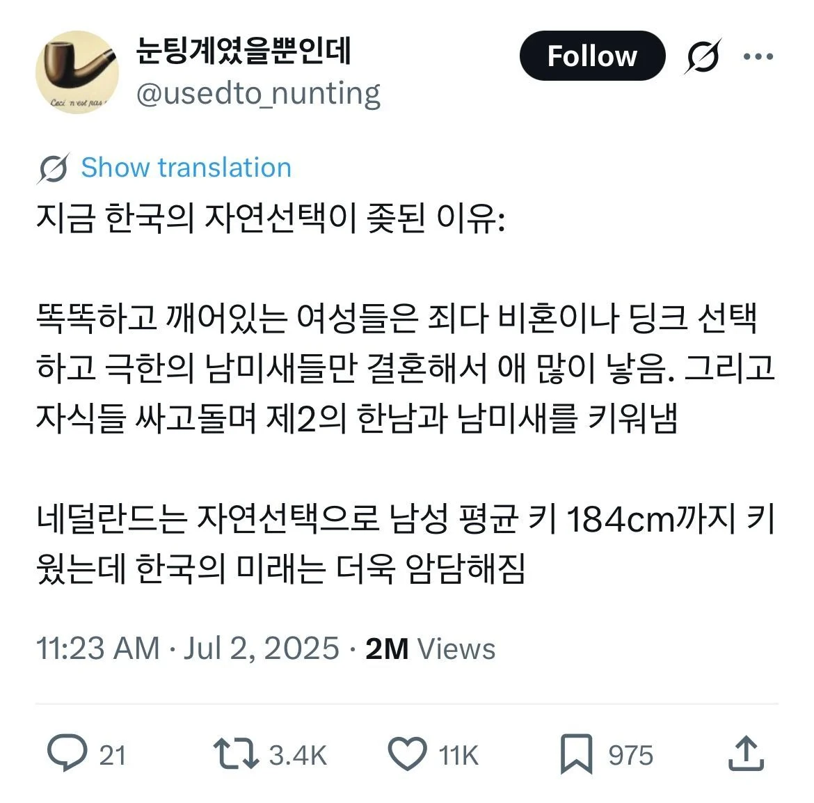 자연선택이 잘못된것 같다는 트위터 사용자