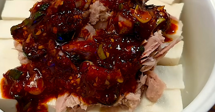 양념은 복잡할 필요가 없다. 간장, 고춧가루, 다진 마늘, 설탕 또는 조청, 참기름만 있어도 충분하다. 여기에 물을 아주 소량만 더한다. 냄비 조림처럼 자작하게 부을 필요가 없다. 전자렌지 안에서는 두부 자체에서 수분이 나오기 때문에 양념이 금세 퍼진다. 양념을 두부 위에 고루 끼얹은 뒤 랩을 씌우거나 전자렌지 전용 뚜껑을 덮고 가열한다.