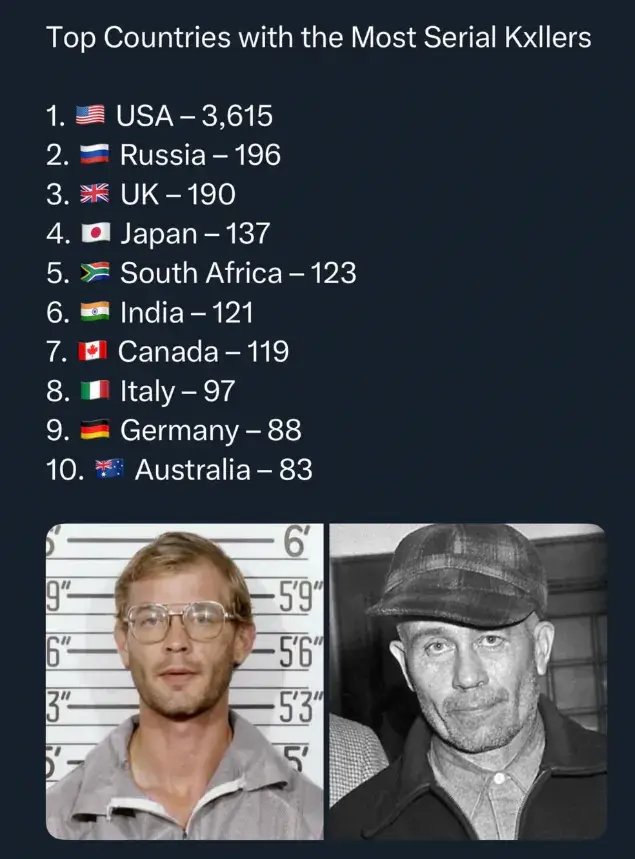연쇄 살인범 많은 국가 순위