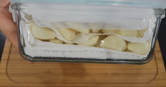 최근 주목받는 방법은 밀폐용기와 굵은 소금을 활용한 보관법이다. 핵심은 밀폐용기 바닥에 굵은 소금을 먼저 깔고, 그 위에 키친타올을 얹은 뒤 깐마늘을 올려 보관하는 방식이다. 겉보기에는 단순한 방법이지만, 이 안에는 식재료 보관의 중요한 원리가 숨어 있다.