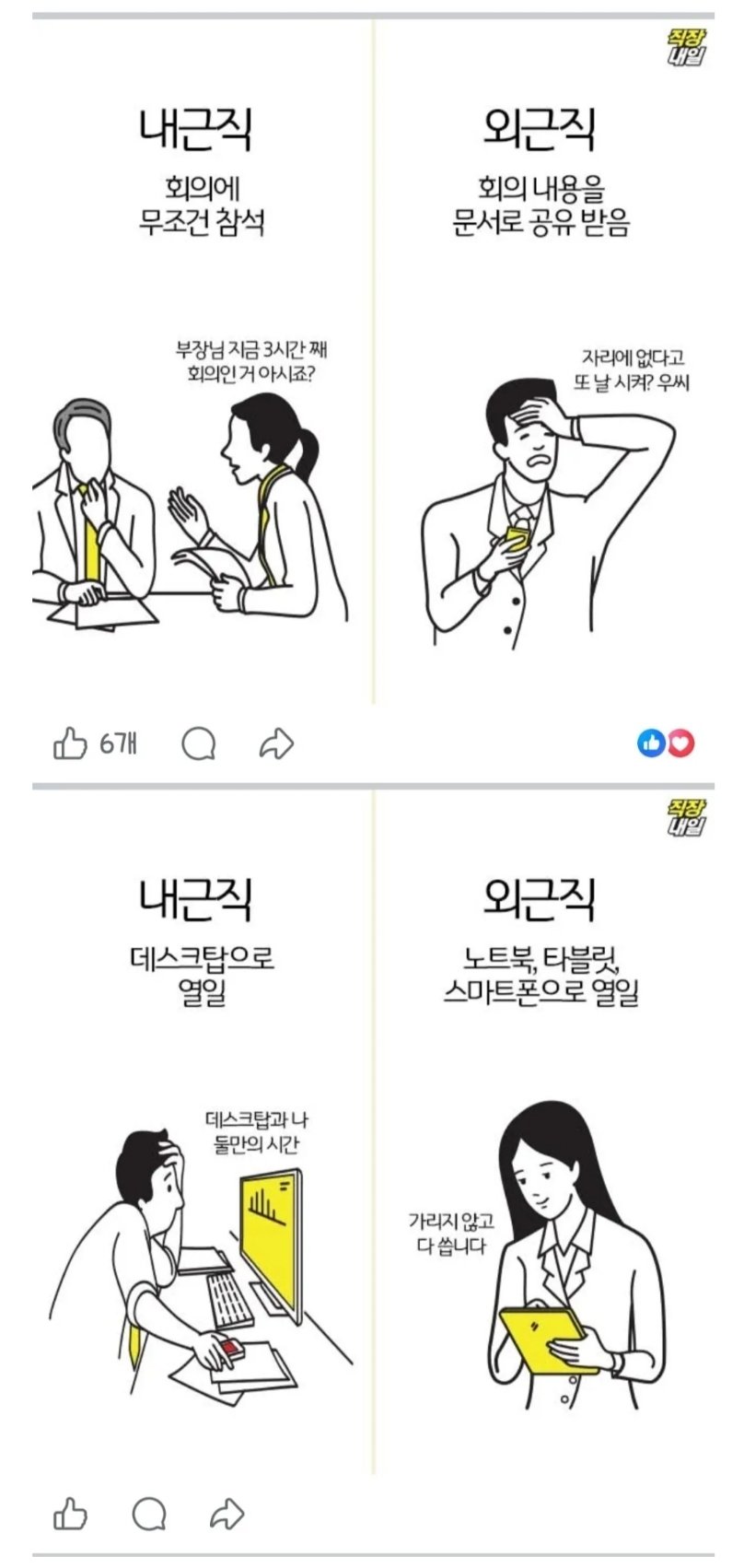 내근직과 외근직의 흔한 차이점