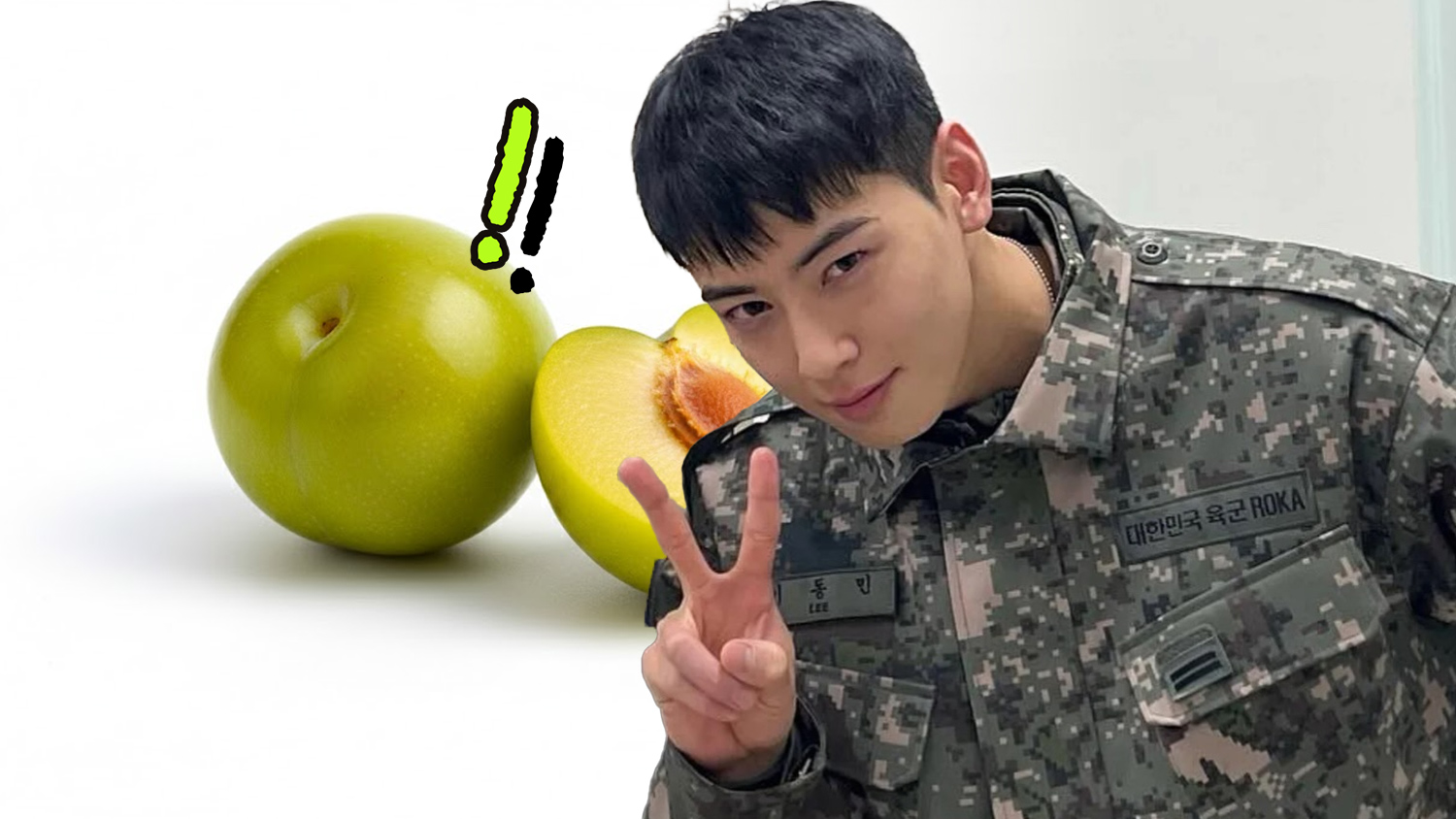 배급된 부식을 외부로 반출하는 것은 군대 원칙상 제한되는 사항. 교관이 왜 먹지 않고 가져왔느냐고 묻자, 차은우는 “아직 안 익은 것 같아서, 익으면 먹으려고 가져왔습니다”라며 예상치 못한 답변을 내놓았다. 당시 배급된 자두가 붉은색이 아닌 푸른 빛을 띠고 있어 덜 익은 과일로 오해한 것이다.