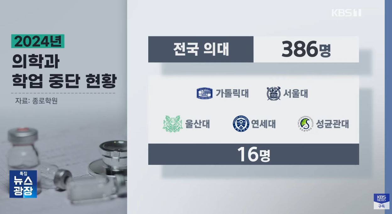 지난해 서울대, 연세대, 성균관대, 가톨릭대, 울산대 등 주요 5개대 의대 중도탈락자 수가 16명으로 최근 5년 새 최다인 점도 눈에 띈다. 대학별로는 서울대·성균관대가 4명으로 중도탈락자 수가 가장 많았고, 연세대·가톨릭대 3명, 울산대 2명 순이다.