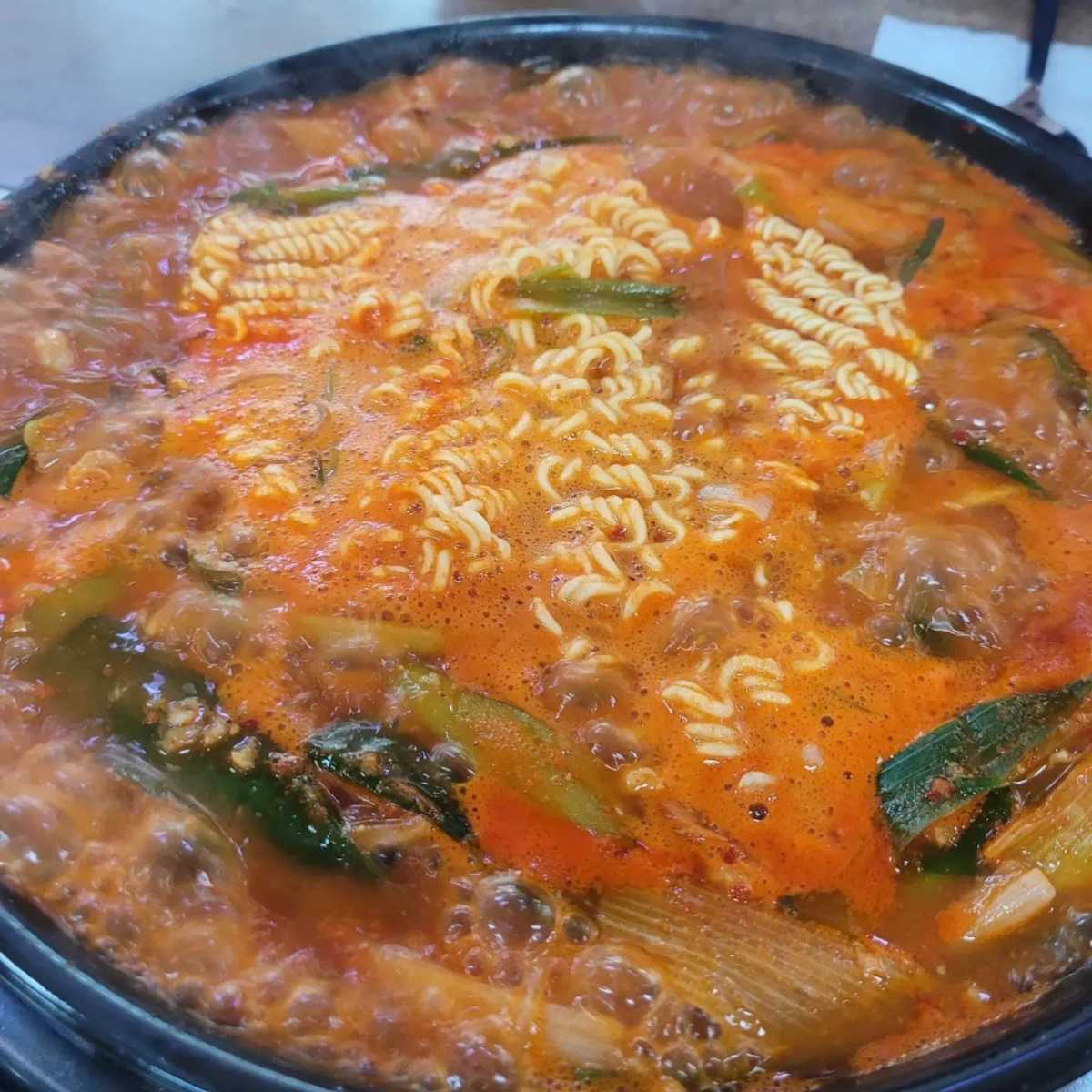 돼지찌개 단일메뉴로 찾아오는 손님들의 든든한 한끼를 위해 정성을 다한다는 경산 ‘진량돼지찌개’. 대파의 단맛이 진하게 우러난 자작한 국물의 돼지찌개는 밥을 절로 부른다. 돼지찌개를 맛있게 먹는 방법으로는 일단 돼지찌개가 나오면 냄비나 국자를 만지지않고 기다렸다가 주인장이 뒤적인 후 라면사리가 익으면 불을 줄이고 라면부터 먹으면 된다. 밥위에 찌개와 김가루, 콩나물을 얹어 비벼먹으면 완성. 자극적이지 않고 담백한 국물맛의 찌개는 밥과 함께 비벼먹으면 그 맛이 한층 더 좋아진다. 백종원의 팁으로는 비빈 밥에 김치를 한조각 올리고 쌈장을 찍은 양파반쪽을 올려 먹은 후 청양고추를 한입 베어무는 것으로 소주가 증발하는 맛이라니 한번 시도해 보는 것도 좋겠다.