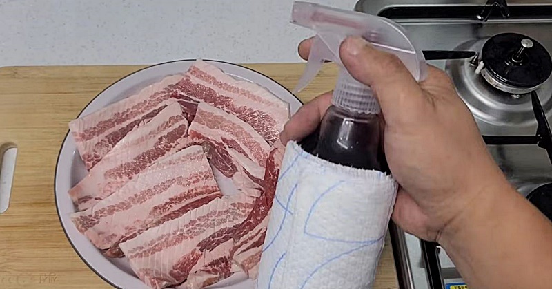 이 미원물을 삼겹살 굽기 전에 사용하는 이유는 명확하다. 삼겹살은 지방 비율이 높아 불에 닿는 순간 특유의 냄새가 올라오기 쉬운데, 조리 전에 미리 고기 표면을 정리해주면 불필요한 향이 줄어든다. 미원물이 고기 속으로 스며드는 것이 아니라, 표면에서 역할을 한다는 점이 중요하다. 따라서 뿌린 뒤 오래 재울 필요도 없다. 굽기 직전, 고기 겉면이 살짝 촉촉해질 정도면 충분하다.