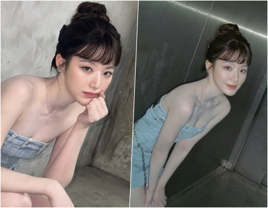 사진 속 슈화는 데님 소재의 미니 원피스를 입고 있는 모습으로, 오프숄더 디자인에 드러난 슈화의 우윳빛 피부가 시선을 사로잡는다. 특히 슈화는 가녀린 어깨라인과 몸매를 드러낸 것은 물론, 살짝 내려간 듯한 의상에 글래머러스한 자태까지 과시했다.