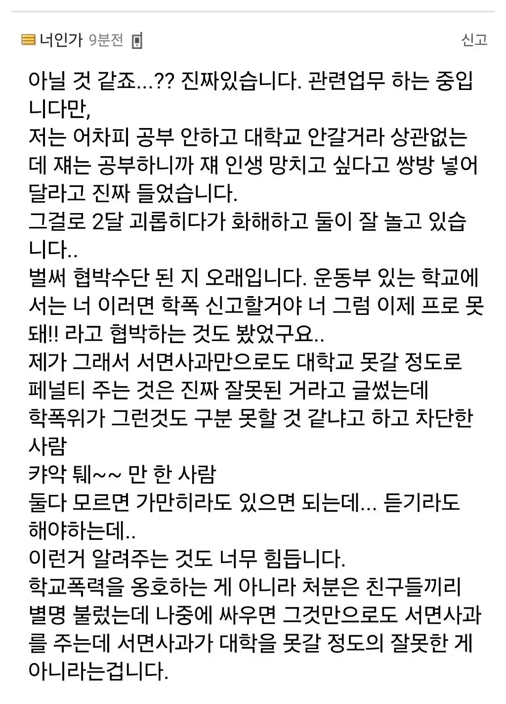 남동생이 학폭 가해자 낙인 찍혀서 소송 중