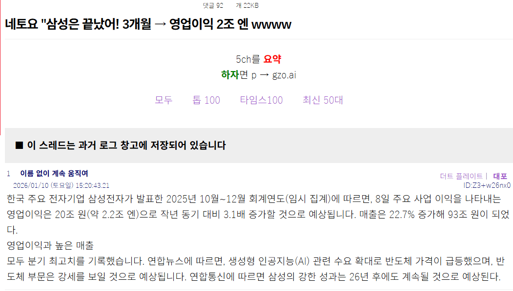 며칠 전 삼성은 망할 거라고 예측한 일본
