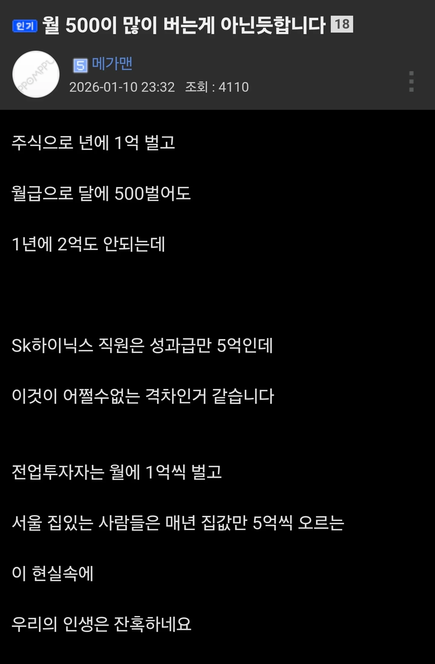 월 500만원이 많이 버는 게 아닌 듯 합니다