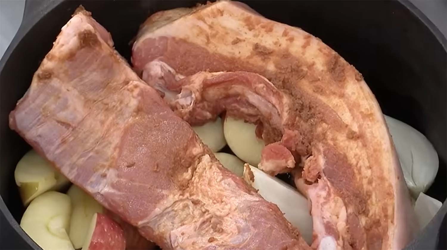 조리법은 의외로 간단하다. 먼저 주물 냄비 바닥에 사과 2개와 양파 1개를 큼직하게 썰어 넣고 물과 소주를 각 1컵씩 붓는다. 여기에 된장을 골고루 바른 통삼겹살을 올려 찐다. 임 셰프는 "된장은 돼지고기 잡내를 잡는 용도"라고 설명했다. 찌는 시간은 취향에 따라 조절하면 되는데, 쫄깃한 식감을 원하면 50분, 부드러운 식감을 원하면 1시간 찐 후 뚜껑을 열지 말고 10분간 뜸을 들인다.