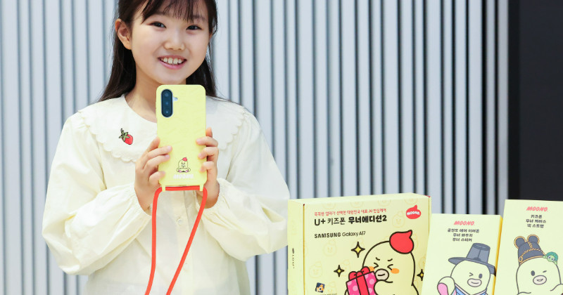 2일 시장에 나온 U+키즈폰 무너 에디션2(이하 무너폰2는 삼성전자의 갤럭시 A17 LTE 모델을 기반으로 제작됐다. LG유플러스의 자체 인기 캐릭터인 무너를 스마트폰 배경 화면과 테마 전반에 적용해 어린이 사용자의 친밀도를 높였다. 제품 출고가는 부가세를 포함해 36만 9500원으로 책정됐으며, 기기 색상은 블루와 그레이 두 가지 옵션 중 선택 가능하다. 패키지 구성은 어린이 사용 환경에 맞춰 실용성을 강조했다. 스마트폰 본체를 비롯해 귀를 막지 않아 안전한 키즈 골전도 에어 이어폰, 전용 무너 파우치, 폰 케이스, 넥스트랩, 꾸미기용 무너 스티커, 액정 보호필름 등 다양한 액세서리가 기본 제공된다.