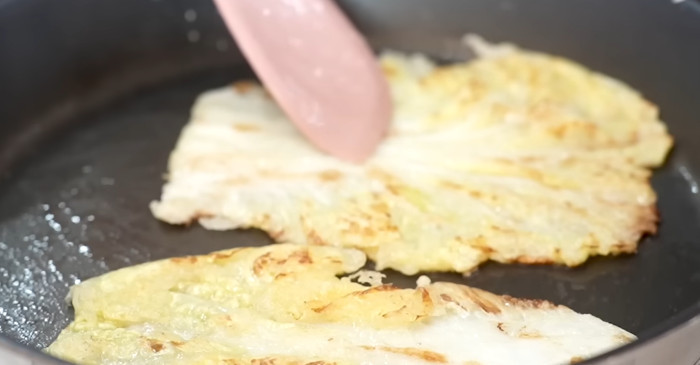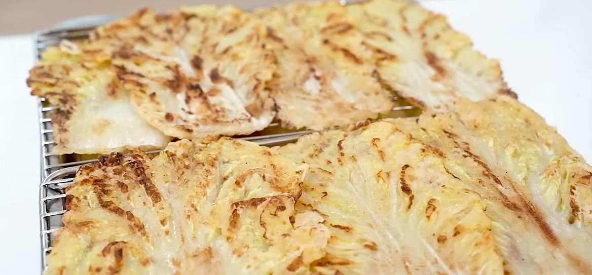 굽는 과정에서도 요령이 있다. 팬은 충분히 예열한 뒤 식용유를 넉넉히 두른다. 중불에서 배추를 올리고, 처음에는 손대지 않고 기다리는 것이 중요하다. 전분 반죽이 열을 받으며 굳는 시간이 필요하기 때문이다. 성급하게 뒤집으면 아직 고정되지 않은 상태라 쉽게 찢어진다. 가장자리가 노릇해지고 자연스럽게 팬에서 떨어질 때 뒤집어야 모양이 유지된다.