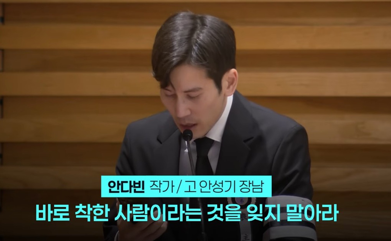 특히 그는 “이 세상에 반드시 필요한 것은 착한 사람이라는 것을 잊지 마라”라는 문장을 통해, 화려한 명성보다 ‘착한 성품’의 가치가 무엇보다 중요함을 역설했다. 편지를 읽어 내려가던 안다빈 씨는 끝내 오열하며 부친을 향한 그리움을 나타내 보는 이들의 가슴을 먹먹하게 했다.