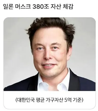 일론머스크 380조 자산 체감 1. BBQ 치킨 1마리 = 0.02원 2. 아이폰17 프로맥스 = 3원 3. 제네시스 G90 = 110원 4. 람보르기니 아벤타도르 = 850원 5. 시그니엘 펜트하우스 300평 = 28,000원 6. 에테르노 청담 X 29세대 건물 전체 = 620,000원 코카콜라를 거의 완벽하게 만들어낸 한 유튜버요즘 맥도날드가 하는 행동의외로 첩이 하는 일 ㄷㄷ실시간 북한 날씨 근황손금분석결과.. 변태력 95점