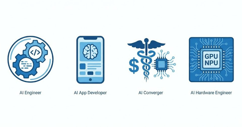AI 융합가는 금융이나 의료 등 특정 산업의 도메인 지식에 AI 기술을 결합해 문제를 해결하는 직군이다. 금융 분야의 퀀트(Quant)나 헬스케어 과학자가 대표적이다. 최근 수요가 급증하는 AI 하드웨어 엔지니어는 AI 연산의 핵심인 NPU와 GPU 시스템이 물리적으로 최적의 성능을 내도록 설계하고 검증하는 고난도 작업을 수행한다.