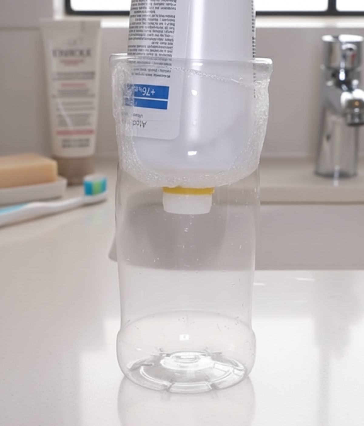 우선 다 써가는 로션이나 샴푸 통의 펌프형 뚜껑을 완전히 돌려서 제거한다. 뚜껑을 제거하면 넓은 입구가 드러나는데, 이 상태로 그냥 두면 먼지가 들어가거나 내용물이 한꺼번에 쏟아질 수 있다. 이를 방지하기 위해 입구 부분을 비닐 랩으로 팽팽하게 감싼다. 랩이 벗겨지지 않도록 고무줄로 한 번 더 고정하면 더욱 안정적이다. 그 후 이쑤시개나 바늘을 이용해 랩 중앙에 구멍을 3~5개 정도 뚫어준다. 이렇게 하면 통을 뒤집었을 때 중력에 의해 내용물이 입구 쪽으로 천천히 모이면서도, 한 번에 왈칵 쏟아지는 것을 막아주는 '거름망' 역할을 하게 된다.