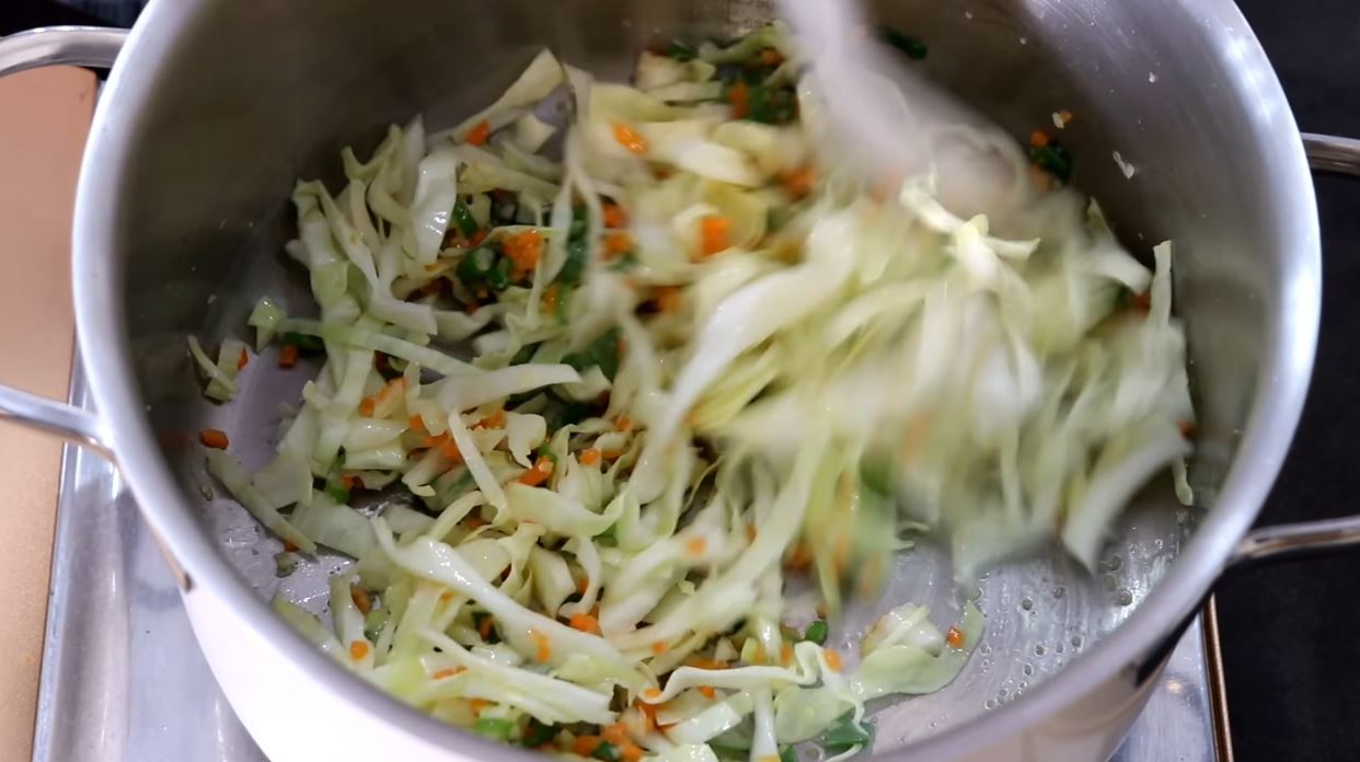 냄비에 참기름이나 들기름을 소량 두르고 다진 양배추를 먼저 볶는다. 이 과정이 양배추의 단맛을 끌어내는 핵심이다. 불은 약하게 유지하고, 숨이 살짝 죽을 정도까지만 볶는다. 여기에 불린 쌀을 넣어 함께 볶아주면 쌀알에 기름 코팅이 돼 죽이 쉽게 퍼지지 않는다.