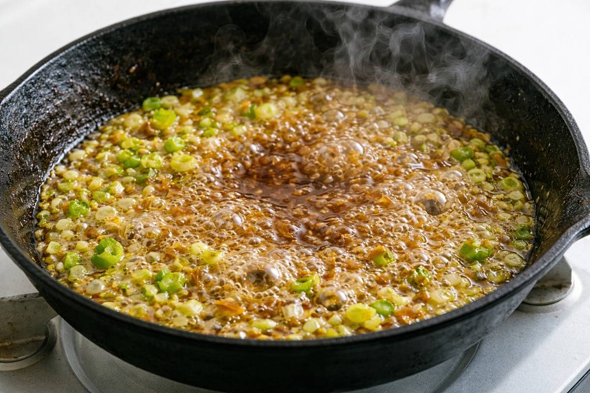 게다가 파기름에 액젓을 한 번 끓여주는 과정은 액젓의 향을 날카롭게 튀기지 않게 하고, 기름에 녹여 부드럽게 퍼지게 만든다. 결과적으로 “간장은 빠졌는데, 맛은 더 또렷해진” 느낌이 나온다.