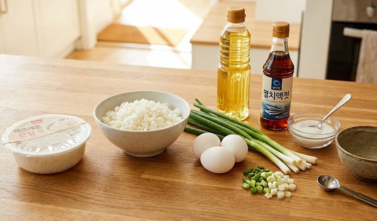 재료는 단순하다. 밥은 즉석밥 또는 미리 식혀둔 찬밥을 추천한다. 계란 2~3개, 대파 흰 부분 1대, 식용유 2~3스푼, 멸치 액젓 2스푼, 설탕 1스푼이면 준비 끝이다. 여기서 중요한 건 ‘대파’다. 계란볶음밥의 향을 결정하는 건 결국 파기름이기 때문이다.