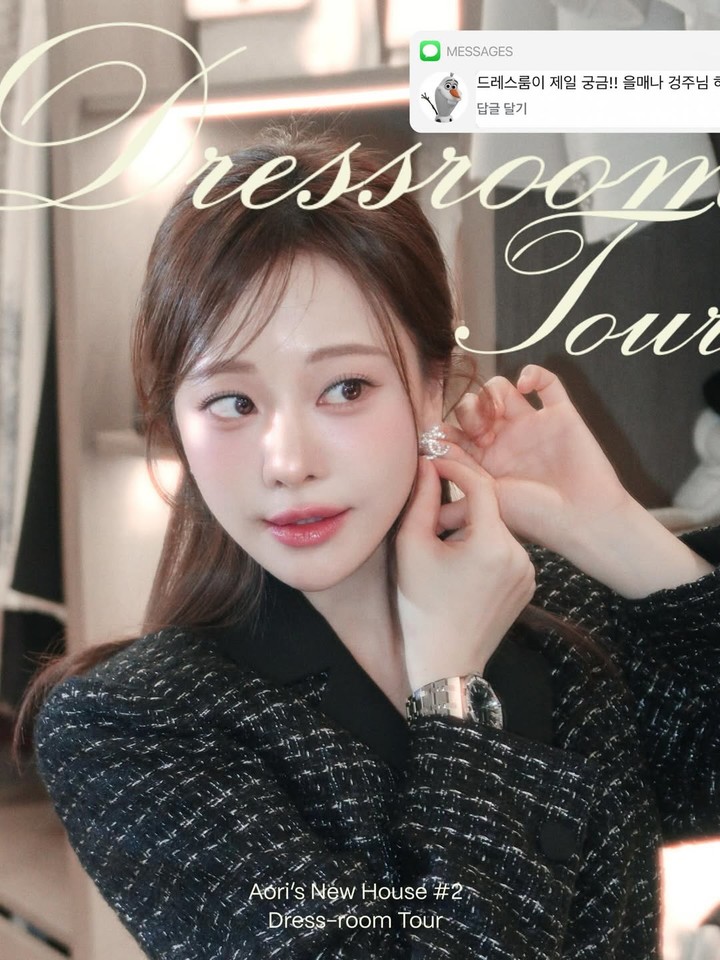 아옳이는 ‘뉴 드레스룸’이라는 설명과 함께 “드레스룸 콘텐츠 찍어볼까요?”라고 제안하며, 양손에 다른 가방을 들어 올리며 고민하는 모습을 연출했다. 이로써 공간 자체뿐 아니라 라이프스타일 콘텐츠로의 방향도 예고했다.