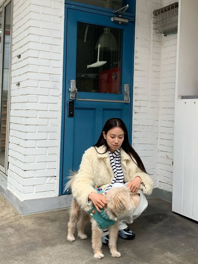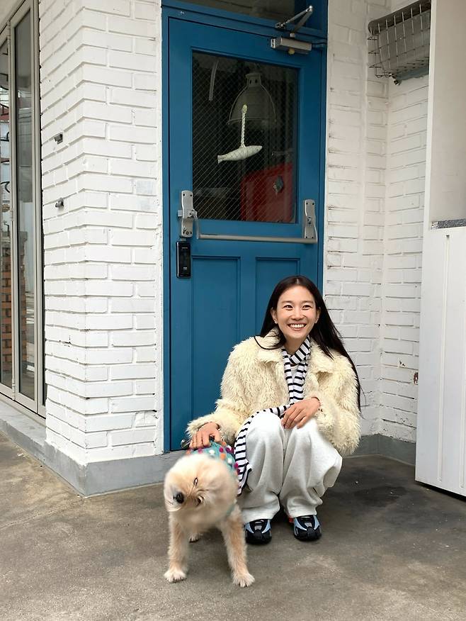 보들보들한 퍼 아우터와 편안한 면 팬츠의 조합이 장희령의 수수한 미소와 어우러져 보는 사람까지 기분 좋아지는 따뜻한 에너지를 전해주거든요.