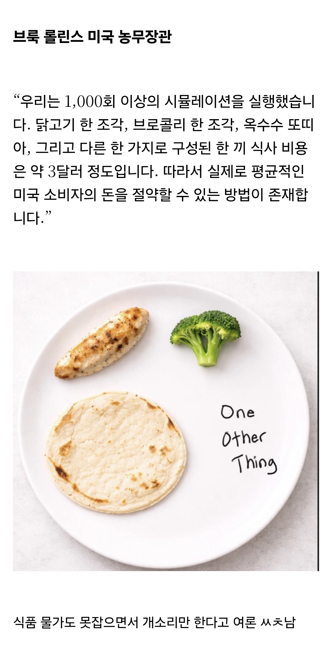 반응 안좋다는 미국 농무장관 발언