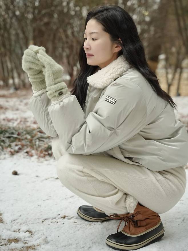 사진 속 류이서는 차분한 그레이시 실버 톤의 숏 패딩에 보드라운 아이보리 팬츠를 매치해, 전체적으로 깨끗하고 화사한 겨울 분위기를 자아내고 있는데요.