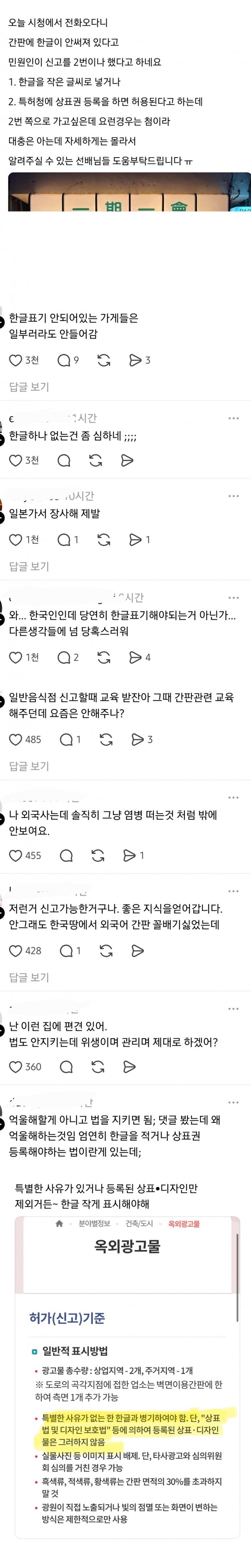간판에 한글이 없다고 두번이나 신고당했어