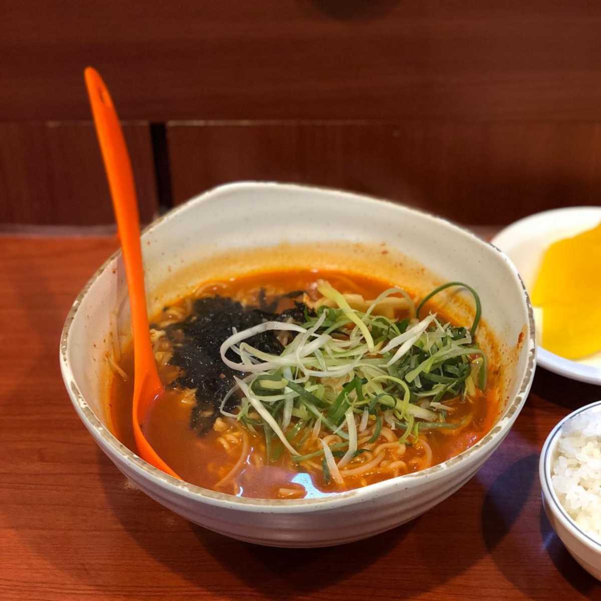 매운라면이 먹고 싶을 때 생각나는 회기역 ‘레알라면’. 메뉴는 3가지로 옐로우, 오렌지, 레드로 구분된다. 옐로우는 안성탕면 정도의 매운맛, 오렌지는 불닭볶음면 정도의 매운맛, 레드는 신라면 4배정도의 최고 매운맛이란다. 밥과 반찬은 셀프바에서 마음껏 이용이 가능한데 매운라면 전문인 만큼 눈꽃 치즈가 셀프바에 마련되어 있어 라면에 넣어 먹을 수 있다. 가장 많이 주문하는 오렌지도 충분히 매운맛으로 먹을수록 점점 더 매워지지만 계속 당기는 맛이다.