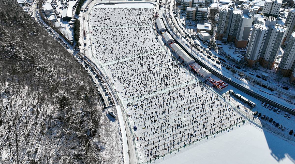 축제는 지난 10일 개막했다. 화천군 집계로는 개막 이후 17일까지 57만 4000여 명이 축제장을 찾았다. 화천읍 화천천 일대에는 이른 아침부터 얼음낚시를 즐기려는 가족 단위 관광객과 연인, 친구들이 줄지어 들어서며 ‘체감 흥행’을 만들었다.