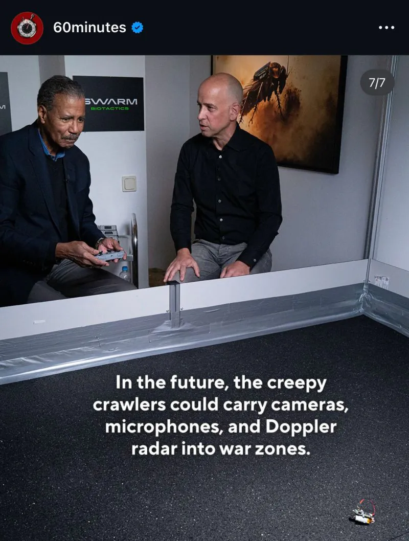 독일 방산 스타트업 Swarm-biotactic 바퀴벌레에 기술을 접목해서 도청 장치로 활용할 기술 개발중 바퀴벌레에 10g~15g 가방 달고 적진 침투, 더듬이에 전극장치(?) 부착해서 조종도 가능함 실제로 영상보면 컨트롤러로 바퀴벌레 방향 원격 조정하더라 홍라희, 삼성전자 주식 1천500만주 처분디즈니 명언 콘테스트 대참사3년만의 "최강 한파" 이번주 시작살인자들이 탈옥에 성공했다, 클린턴 교정시설 탈옥사건연기처럼 사라져버린 15살 중학생