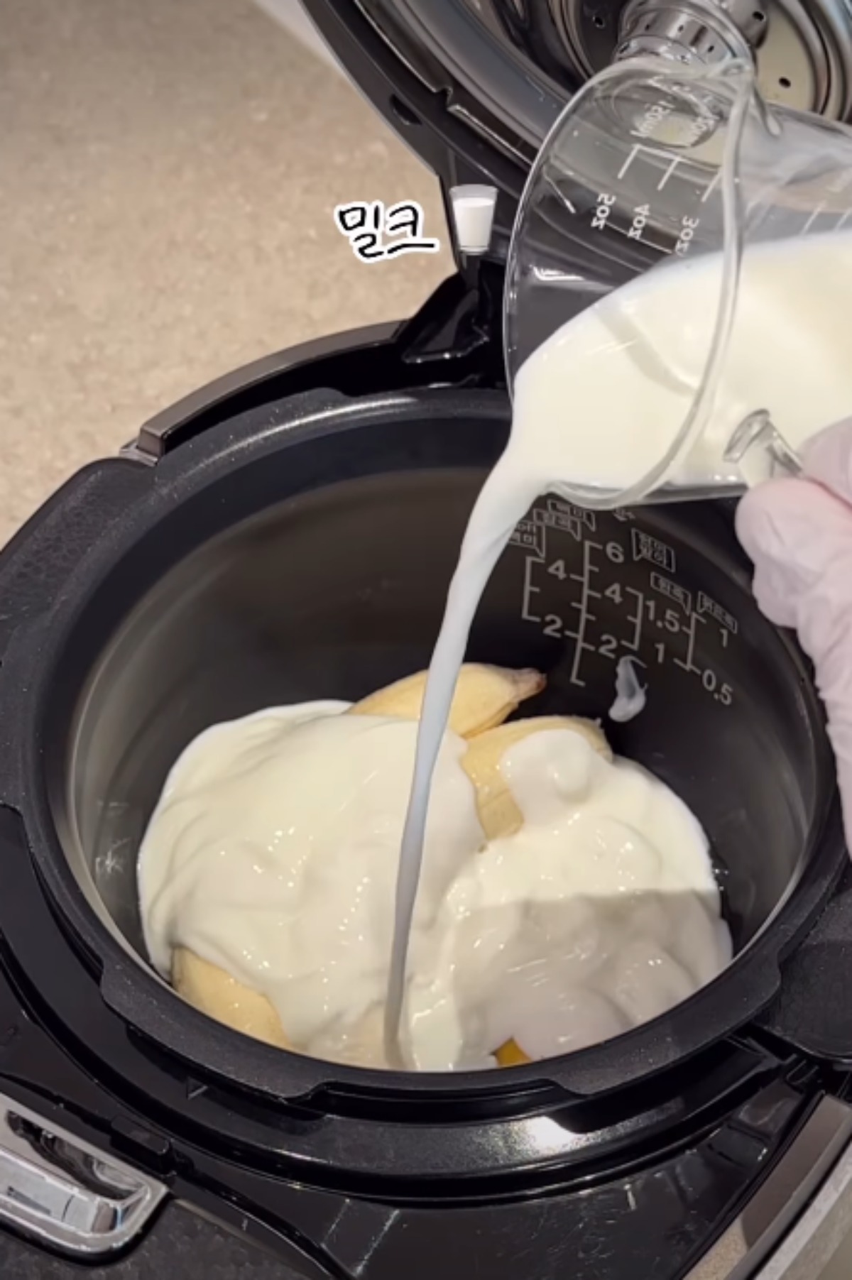 먼저 바나나 2개, 핫케이크가루, 요거트 85g 용량 2개, 계란 2개, 우유, 알룰로스를 준비한다. 재료 준비만 해도 반은 온 셈이다. 이 재료들을 밥솥에 차례대로 넣기만 하면 되기 때문.