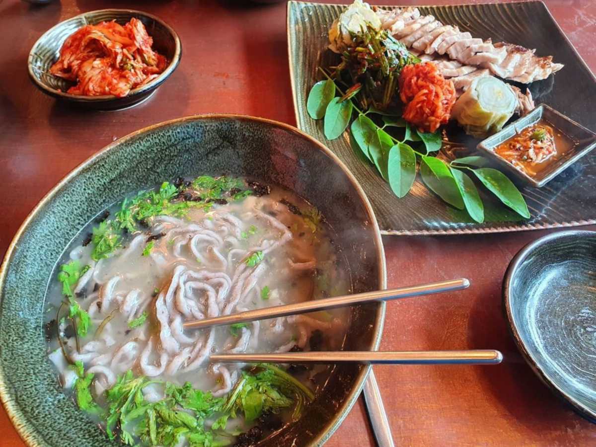 깔끔하고 담백한 맛의 흑미 칼국수 맛집 검단 ‘두손칼국수’. 10년 전 가격과 동일한 가성비 넘치는 가격과 푸짐한 양, 훌륭한 맛으로 늘 손님들의 발길이 끊이지 않는다. 메뉴는 칼국수 단일 메뉴로 칼국수를 시키면 정갈하게 담긴 수육이 함께 나오는 것이 특징이다. 국내산 흑미로 만든 쫄깃한 면발에 천연재료로 만드는 깔끔한 국물이 더 해져 좋은 맛을 낸다. 부드러운 수육은 제철 꽃으로 모양을 낸 플레이팅부터 맛까지 어느 하나 빠지는 게 없다. 건강을 생각한 흑미밥 또한 무료로 무한 제공한다니 가성비와 맛을 모두 잡은 맛집이다.