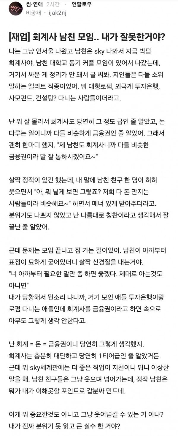 회계사 남친 모임.. 내가 잘못한거야?